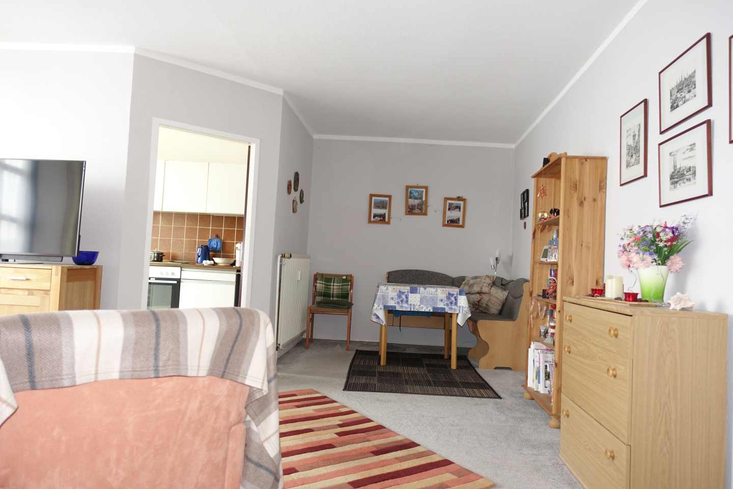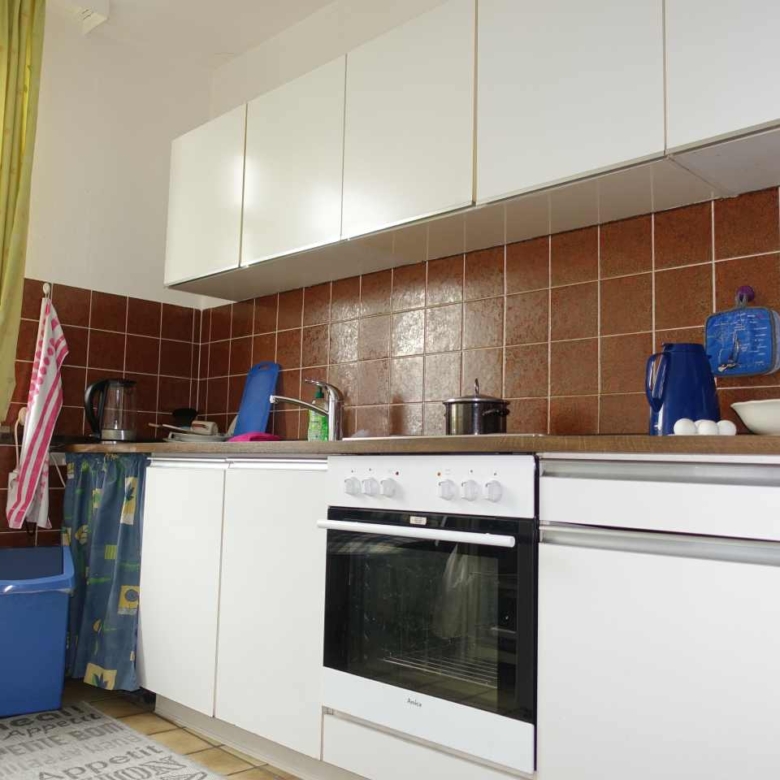 Die Wohnung selbst bietet eine durchdachte Raumaufteilung. Eine Einbauküche, ein hell