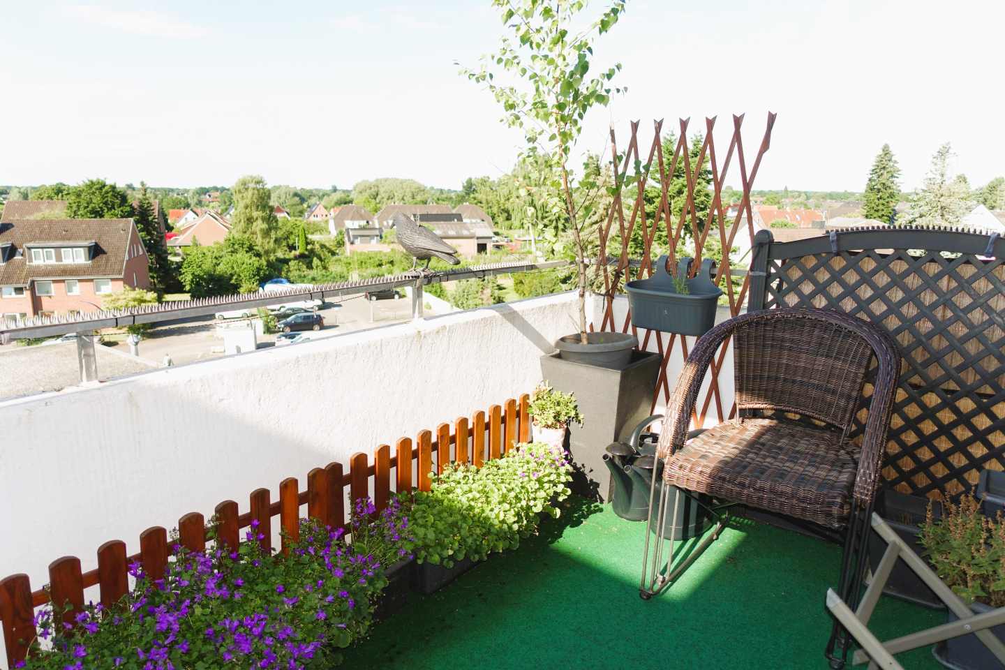 Fällen kann der Balkon auch als kleine Dachterrasse gestaltet sein – ideal für Pflanzenliebhaber