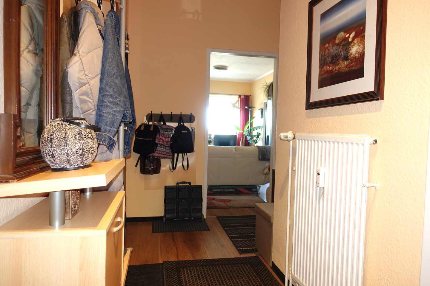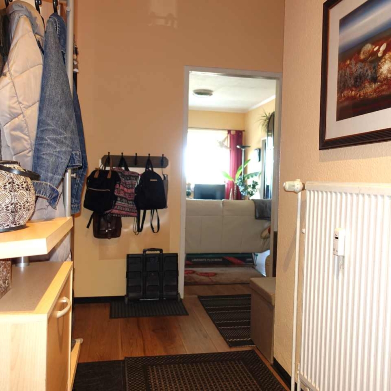 Die Wohnung selbst bietet eine durchdachte Raumaufteilung. Eine Einbauküche, ein hell